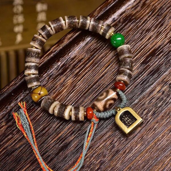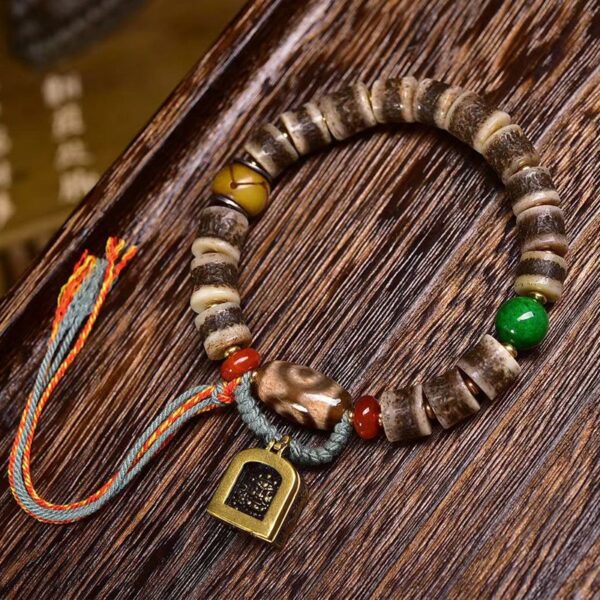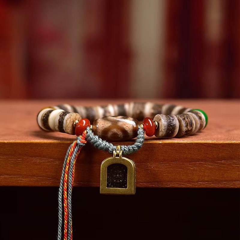 Rugged yak bone beads retain their natural texture, carrying the pure energy of the Tibetan plateau.