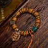 The warm amber tones pair with aged bronze charms, while intricate Tibetan totems add a touch of spiritual meaning.