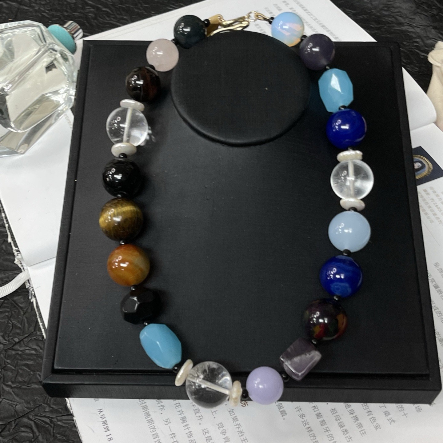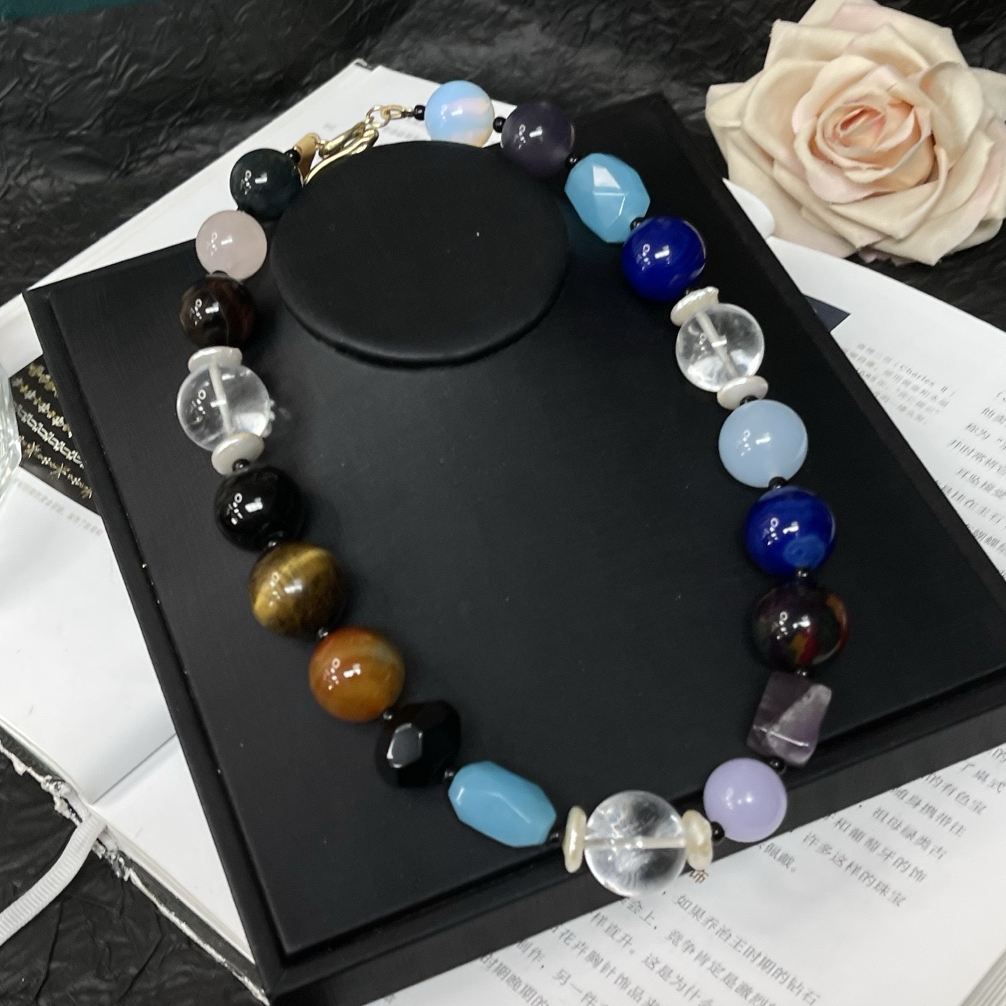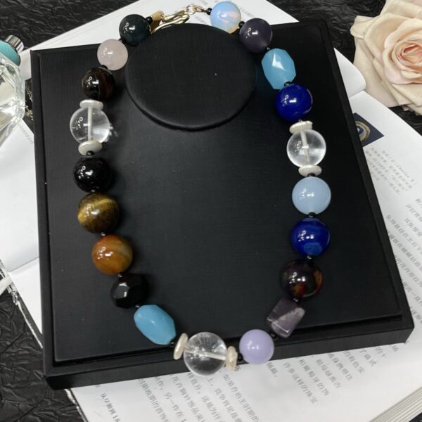 A poetic fusion of natural gemstones, each bead a universe of colors and energy. Handcrafted into a one-of-a-kind statement piece, blending vintage charm with modern artistry. Embrace your unique aura.