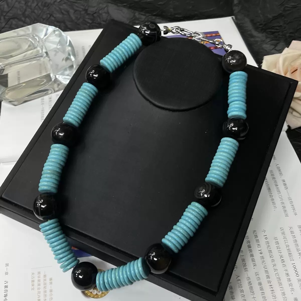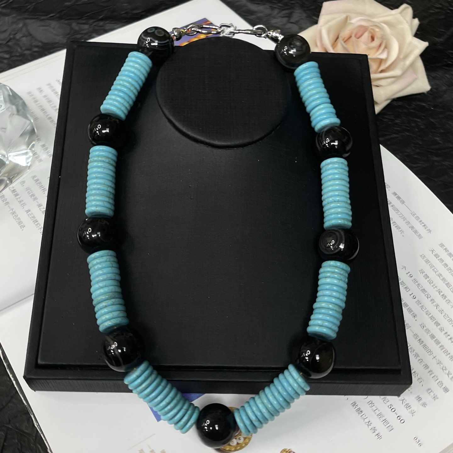 Turquoise-like Gemstone Discs, Black Agate Beads, Alloy Accessories.